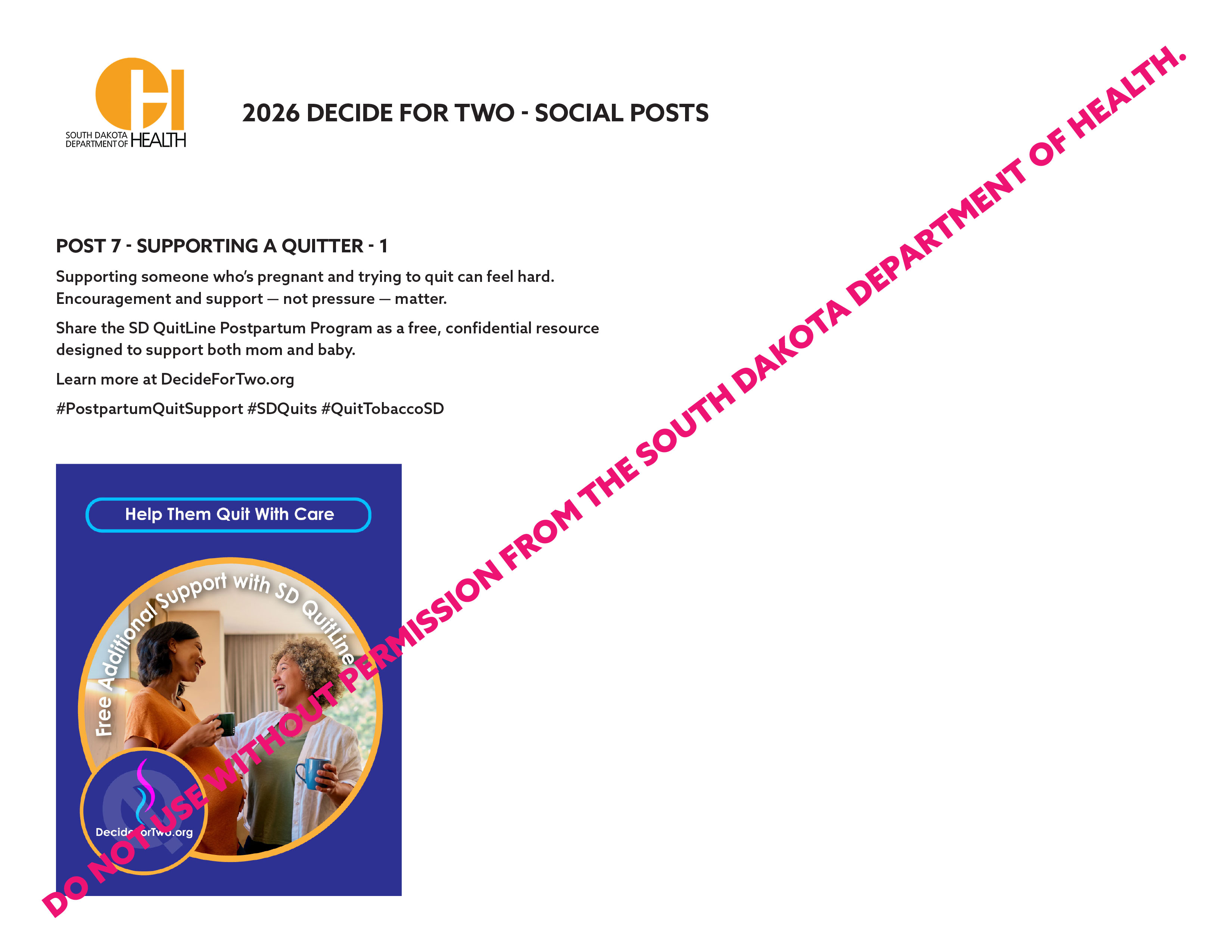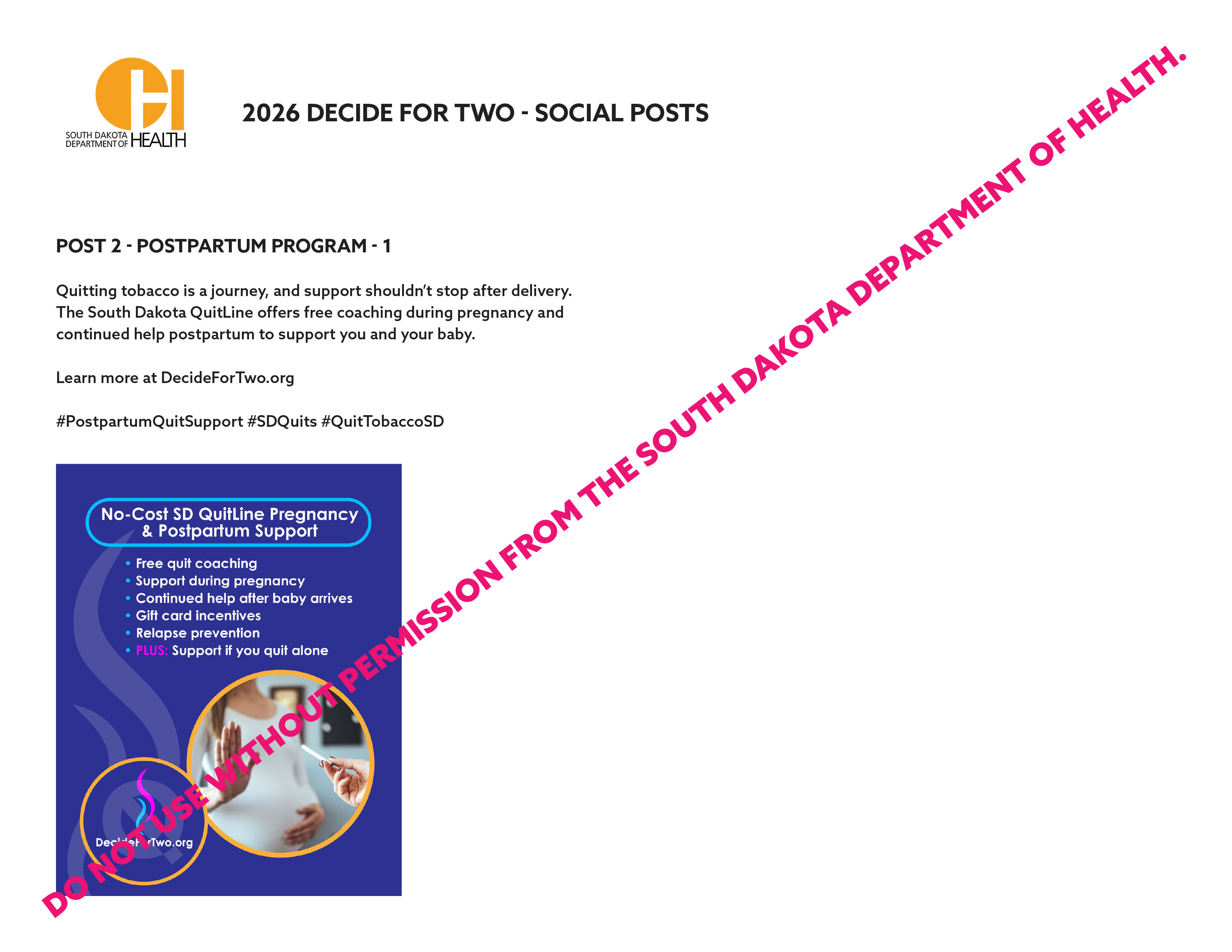 Share the SD QuitLine Postpartum Program as a free, confidential resource designed to support both mom and baby.