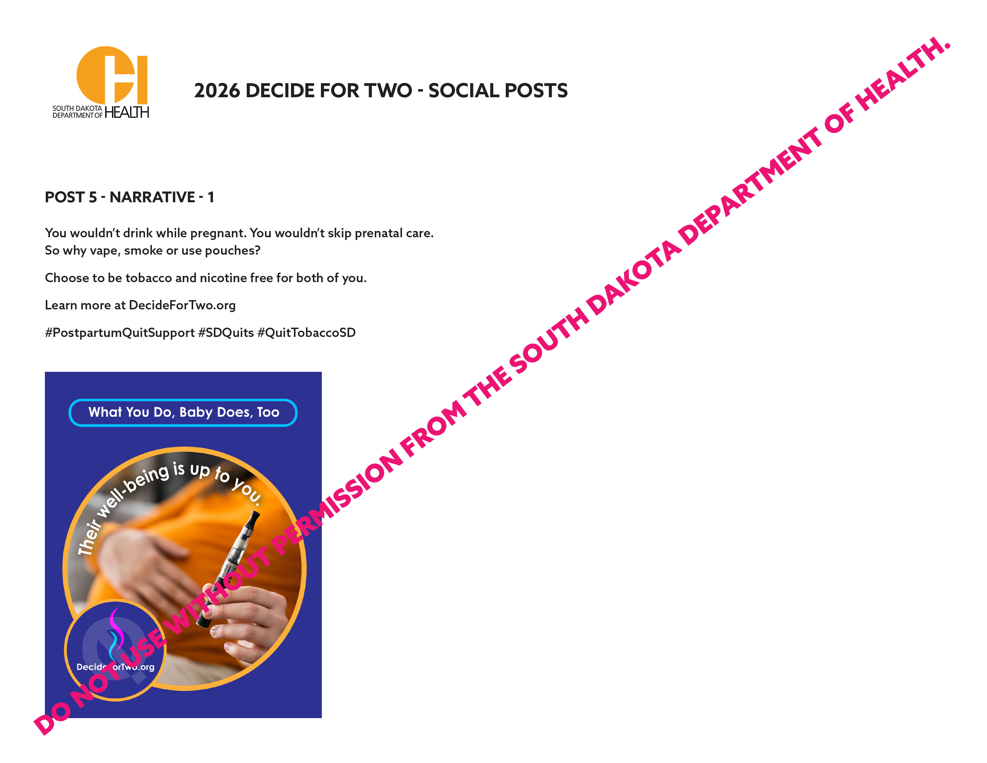 "Quitting tobacco for your baby is a big step — and staying quit after baby arrives matters, too. The South Dakota QuitLine offers free support during pregnancy and continued help postpartum. Plus, support if you’d like to quit alone!